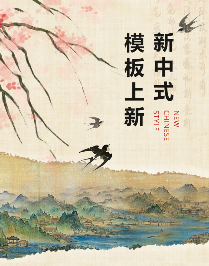 新中式画框模板上线,以传统元素为基底,融入简洁设计,为
